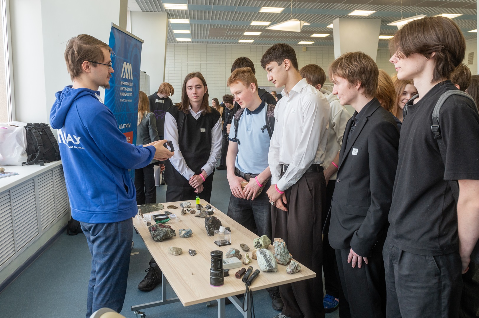 «Когда мы общаемся с ребятами, мы буквально на пальцах объясняем – пять основных направлений. Первое, то есть большой палец, это горные специальности. Это тот мостик, который связывает нас с нашим основным индустриальным партнером и крупнейшим работодателем Апатитско-Кировской агломерации - с компанией «ФосАгро». Второе – энергетические специальности, к ним относится электроэнергетика, то, что важно на производстве. Третье – IT-специальности, они нужны везде, в том числе и в деле автоматизации производственных процессов. Четвертое – естественно-научный блок, он представлен химией, геологией, биологией. Ну и мизинчик – маленький, но важный – социология и экономика», - говорит начальник отдела карьерного сопровождения филиала МАУ в Апатитах Илья Балымов.