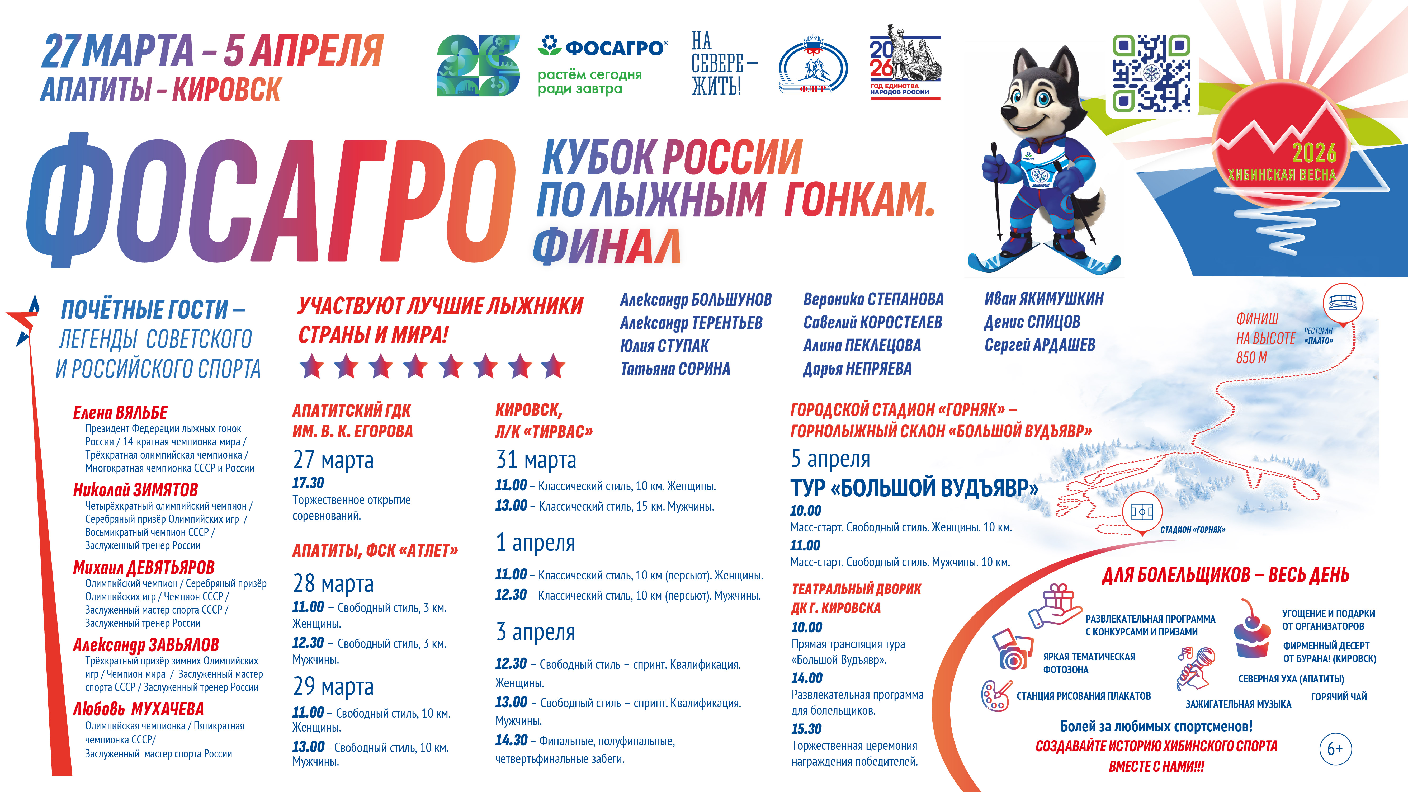 С 31 марта финальные кубковые старты будут проходить в Кировске, на трассах лыжного комплекса «Тирвас». Здесь спортсмены пробегут 10 и 15 км классическим стилем и поучаствуют в спринте.