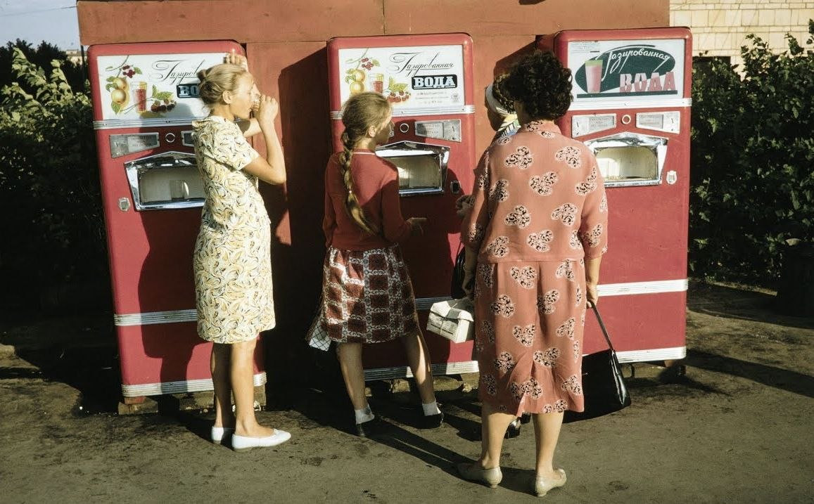 Автоматы появились благодаря визиту Никиты Хрущева в США в конце 50-х годов. Он там впервые увидел такое чудо обезличенной торговли, и в СССР так стали продавать газировку, газеты и даже пиво.