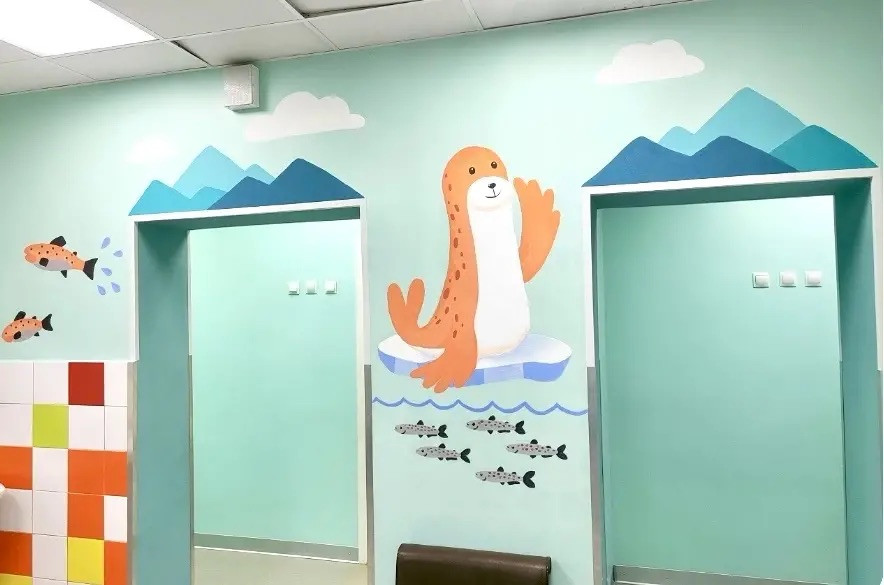 Выполнены общестроительные работы, также было уделено внимание благоустройству и оформлению интерьера. Для художественного оформления были приглашены студенты колледжа «Синергия», которые обучаются на специальности «Графический дизайн». Юные дизайнеры создали на стенах отделения образы арктических птиц и животных.
