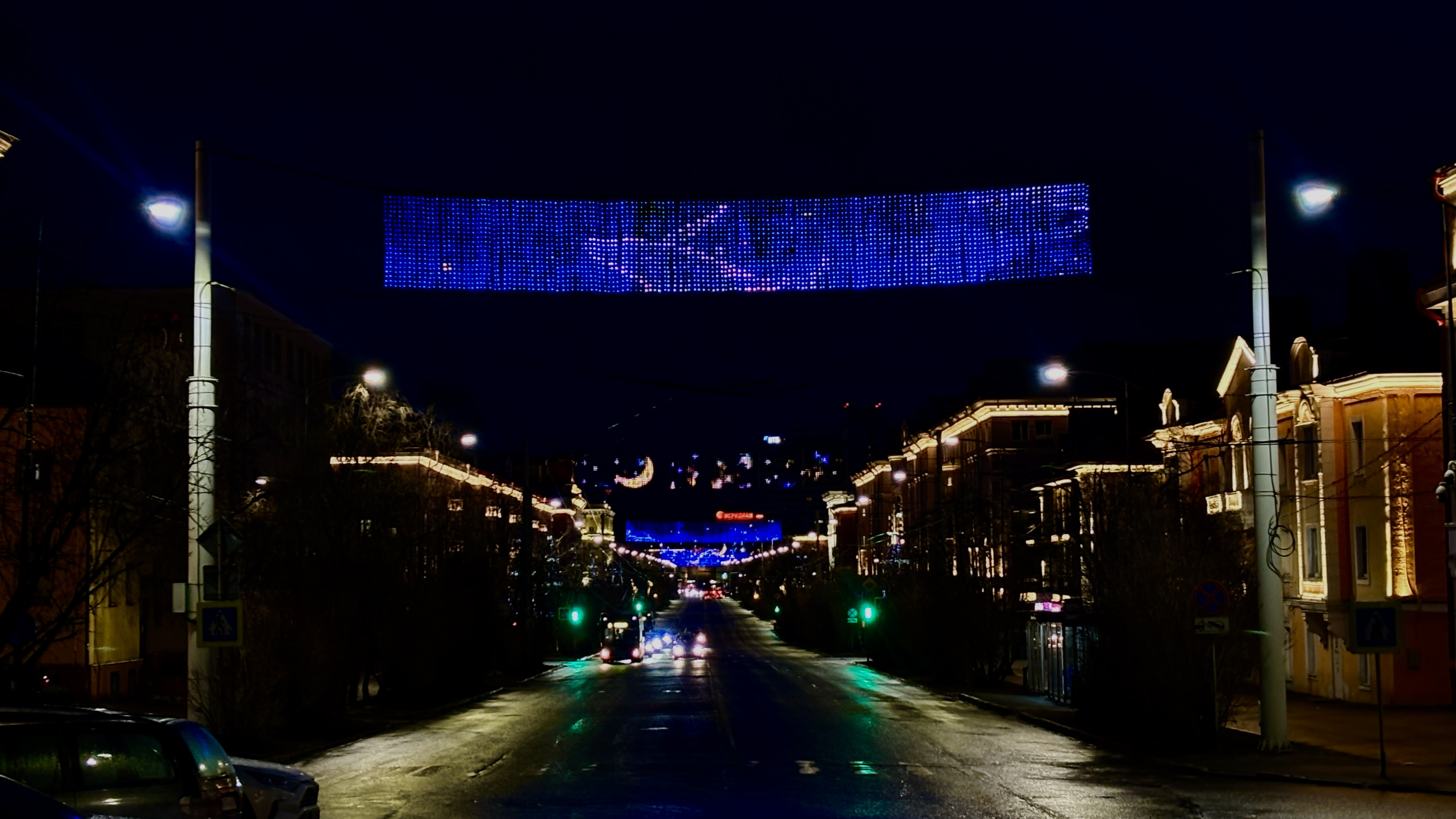 Синие киты будут светиться на 33 растяжках, которые расположены на проспекте Ленина, и на медиафасаде отеля, высота которого составляет 76 метров.