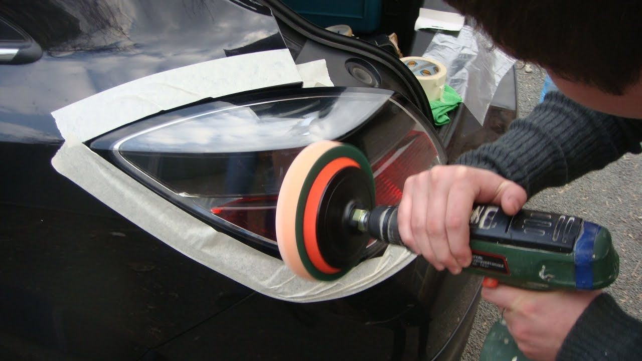 Химическое травление обходится дорого, но это лучшее решение, когда время не ждёт и машину, например, надо срочно готовить к продаже. Можно отполировать поверхность оптики самостоятельно, механическим методом. Сначала работают шлифмашиной, а потом руками. Если поверхность фар сильно помутнела или имеет царапины, лучше их снять и работать на верстаке. Когда в этом нет необходимости, следует фары обклеить по периметру малярным скточем, а зазор между металлом и стеклом залить легко удаляющимся клеем. ПВА сгодится. Обеспечьте себе достаточное освещение, чтобы видать все сложные места и изъяны.
