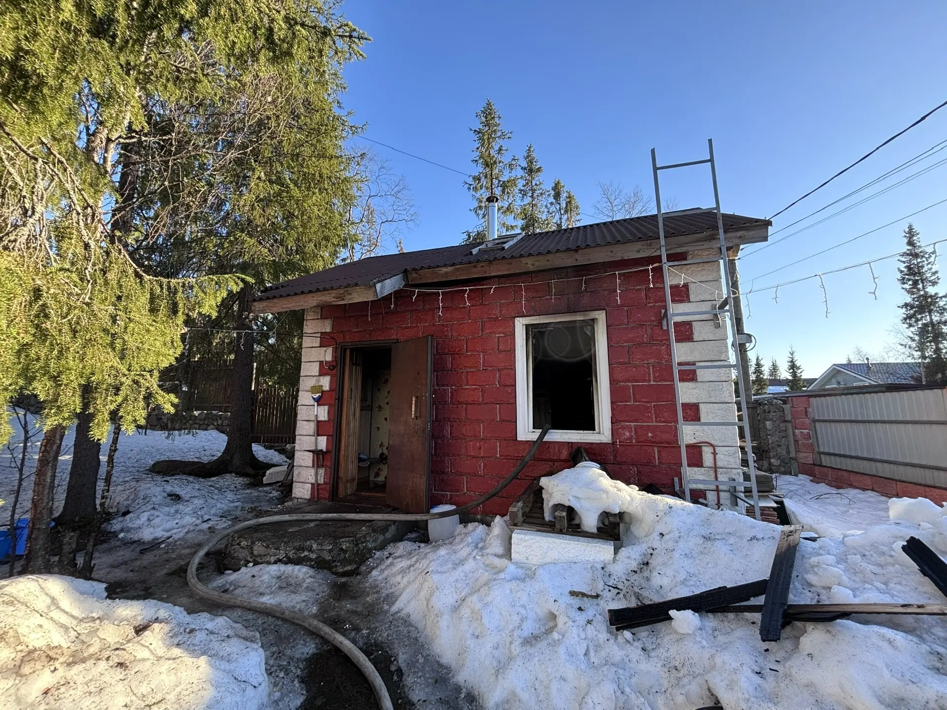 Потушить пожар удалось в 18:16. Кирпичное здание внутри было повреждено огнём на площади 3 квадратных метра, при этом стены и потолок были закопчены на площади 15 квадратных метров. Пожарным пришлось разбирать обшивку стен и потолок.