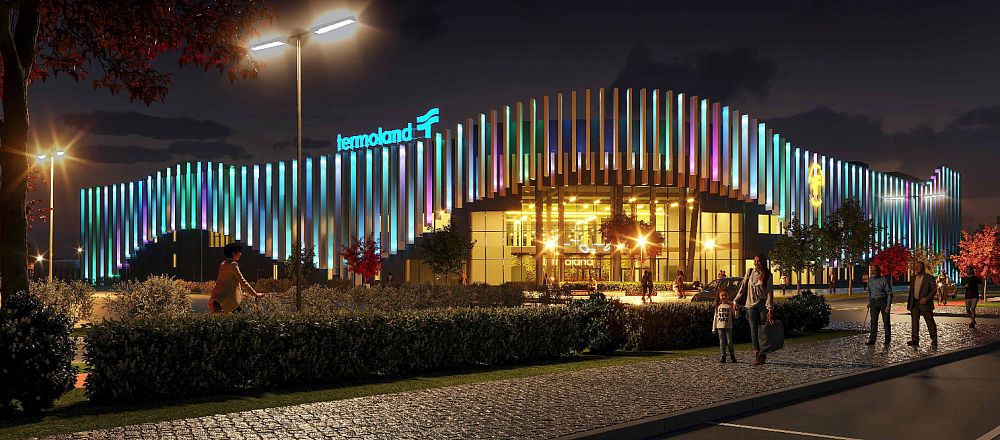 Внутри разместятся аквапарк с аттракционами и горками, фитнес-центр с тренажёрными залами, а также термальная зона, включающая хаммамы, парные и сауны. Дополнят инфраструктуру два кафе. Особенностью комплекса станут открытые уличные купели и модульный павильон с банями, расположенные со стороны двового фасада.