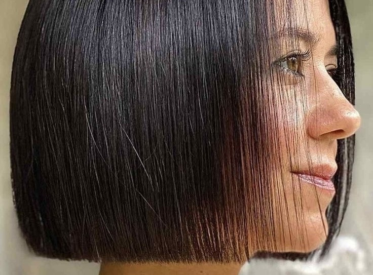Такую стрижка носила Клэр Дэйнс: ровный срез, без градуировки, длина до подбородка или чуть ниже (на фото). Эта причёска очень хороша для тонких волос, так как создаёт визуальную густоту. Ещё один её плюс: укладка осуществляется простым высушиванием феном с круглой щёткой, приподнимая корни.
