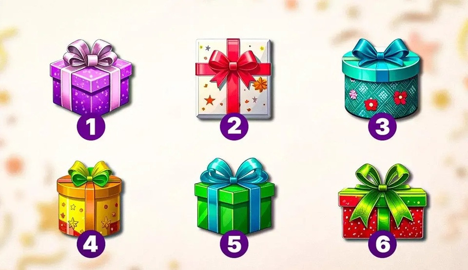 Перед вами несколько подарочных коробок. В каждой из них зашифрована одна главная «изюминка» — та самая сила, которая помогает вам двигаться вперед. Какой подарок привлекает ваше внимание больше других?