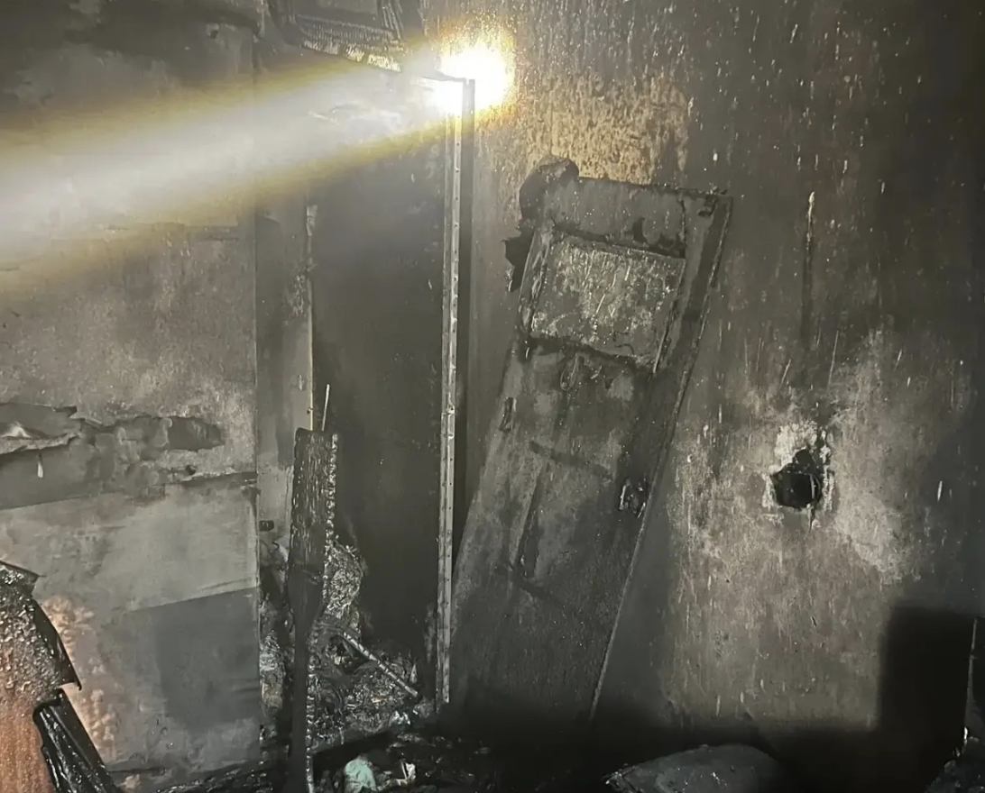 Площадь возгорания составила 7 квадратных метров. От огня пострадали предметы мебели, помещение было полностью закопчено.