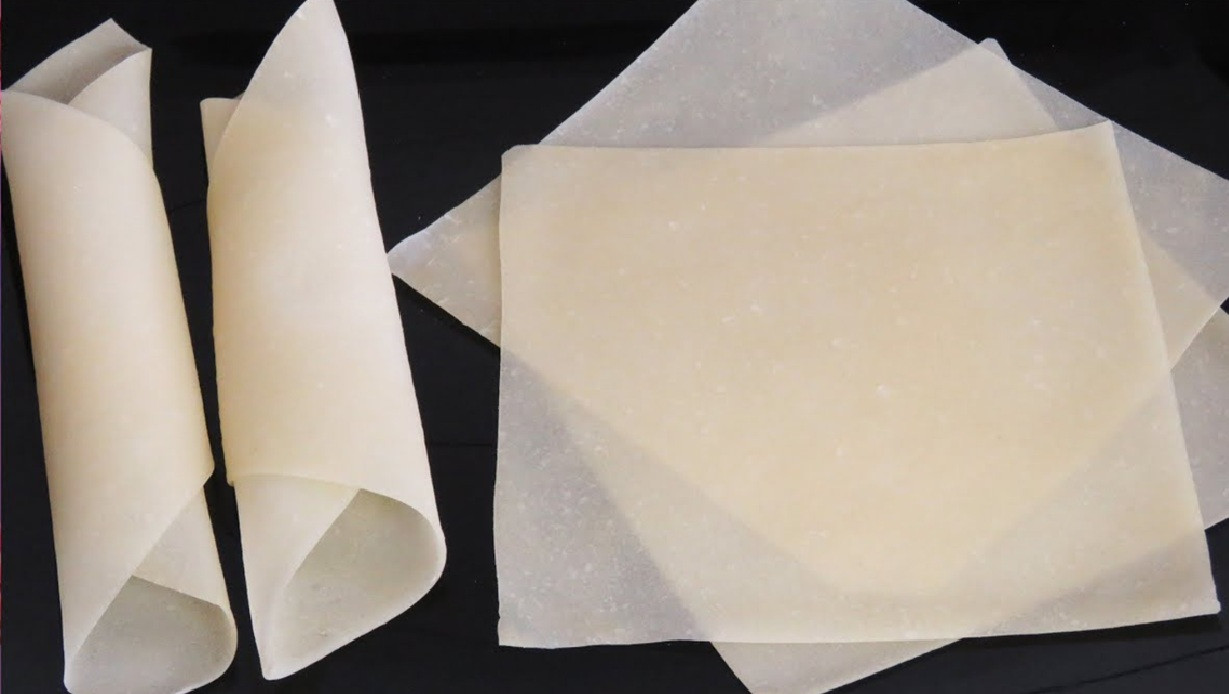 В глубокой миске смешиваем творог и овощи, солим и перчим по вкусу. Лист рисовой бумаги окунаем в емкость с теплой водой буквально на 5–10 секунд, пока он не станет эластичным.